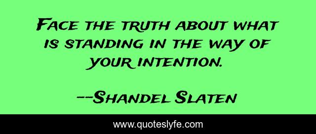 This page presents the quote "Face the truth about what is standing in the way of your intention.". Author of this quote is -Shandel Slaten. This quote is about goals-in-life, intention, honesty, truth,.