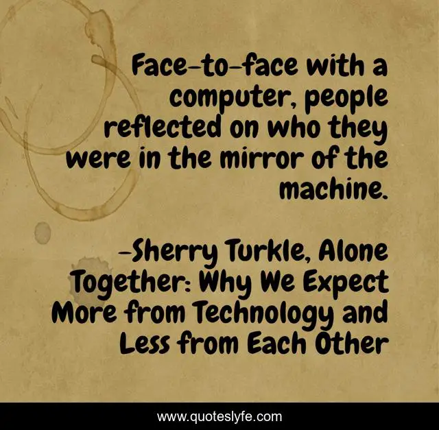 "Sherry Turkle, Alone Together: Why We Expect More from Technology and Less from Each Other Quotes." Quoteslyfe.com, 2025. Fri. 05 Dec. 2025. <https://www.quoteslyfe.com/quote/Face-to-face-with-a-computer-people-196590>.