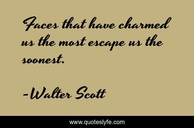 This page presents the quote "Faces that have charmed us the most escape us the soonest.". Author of this quote is Walter Scott. This quote is about escape, us, faces,.