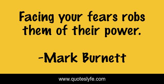 This page presents the quote "Facing your fears robs them of their power.". Author of this quote is Mark Burnett. This quote is about fears, power,.