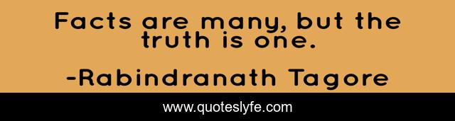 This page presents the quote "Facts are many, but the truth is one.". Author of this quote is Rabindranath Tagore. This quote is about facts, many, truth is,.