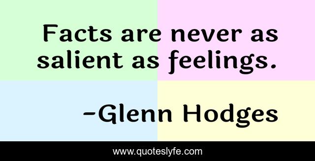 "Glenn Hodges Quotes." Quoteslyfe.com, 2025. Sun. 07 Dec. 2025. <https://www.quoteslyfe.com/quote/Facts-are-never-as-salient-as-feelings-161944>.
