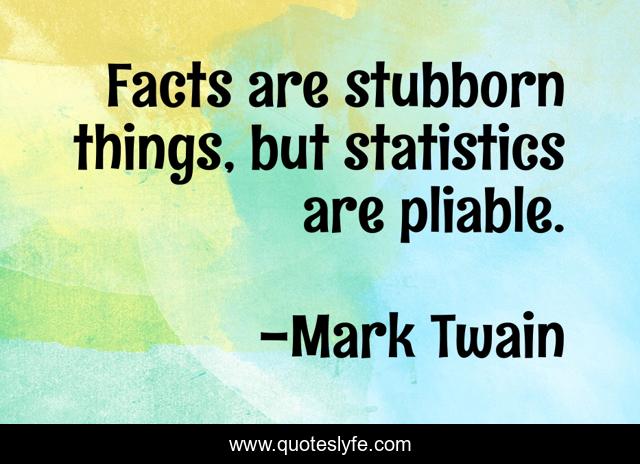 This page presents the quote "Facts are stubborn things, but statistics are pliable.". Author of this quote is Mark Twain. This quote is about facts, statistics,.