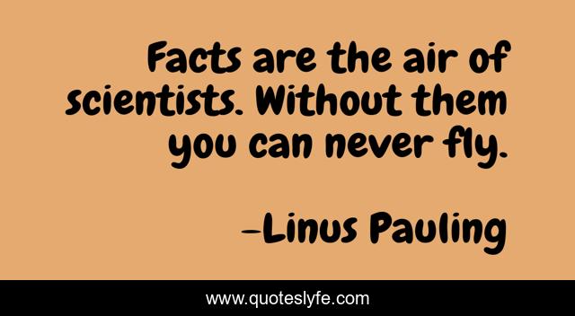 This page presents the quote "Facts are the air of scientists. Without them you can never fly.". Author of this quote is Linus Pauling. This quote is about fly, facts,.