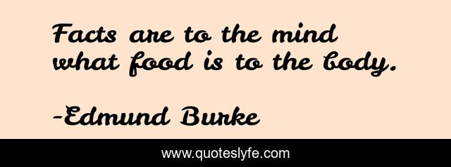 This page presents the quote "Facts are to the mind what food is to the body.". Author of this quote is Edmund Burke. This quote is about body, facts, mind,.