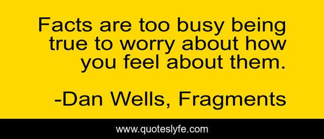 This page presents the quote "Facts are too busy being true to worry about how you feel about them.". Author of this quote is Dan Wells, Fragments. This quote is about facts, feelings,.