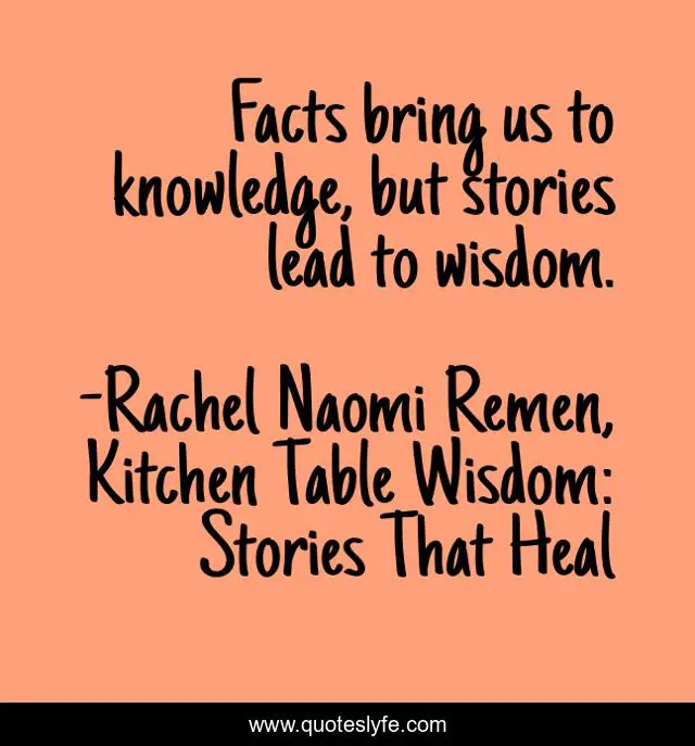 "Rachel Naomi Remen, Kitchen Table Wisdom: Stories That Heal Quotes." Quoteslyfe.com, 2025. Sun. 07 Dec. 2025. <https://www.quoteslyfe.com/quote/Facts-bring-us-to-knowledge-but-stories-31510>.