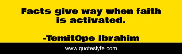 This page presents the quote "Facts give way when faith is activated.". Author of this quote is TemitOpe Ibrahim. This quote is about faith, bow-down, give-way, truth, inspirational, facts, enthusiasm, fact,.