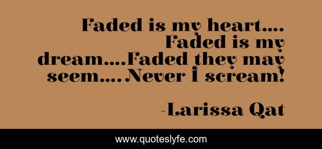 This page presents the quote "Faded is my heart.... Faded is my dream....Faded they may seem.... Never I scream!". Author of this quote is Larissa Qat. This quote is about heart, love, beauty, affection, faded,.