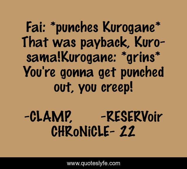 "CLAMP, ツバサ-RESERVoir CHRoNiCLE- 22 Quotes." Quoteslyfe.com, 2025. Sat. 06 Dec. 2025. <https://www.quoteslyfe.com/quote/Fai-punches-Kurogane-That-was-payback-Kuro-126606>.