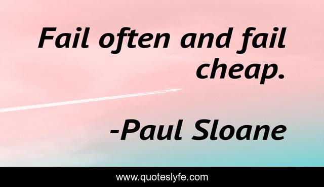 This page presents the quote "Fail often and fail cheap.". Author of this quote is Paul Sloane. This quote is about fail, failure, innovation,.