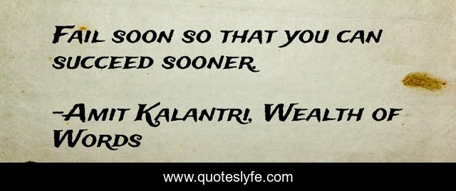 "Amit Kalantri, Wealth of Words Quotes." Quoteslyfe.com, 2025. Sat. 06 Dec. 2025. <https://www.quoteslyfe.com/quote/Fail-soon-so-that-you-can-succeed-13442>.