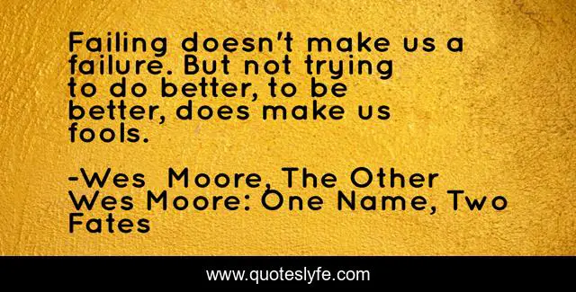 "Wes Moore, The Other Wes Moore: One Name, Two Fates Quotes." Quoteslyfe.com, 2025. Fri. 05 Dec. 2025. <https://www.quoteslyfe.com/quote/Failing-doesn-t-make-us-a-failure-108960>.