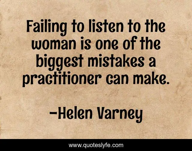 This page presents the quote "Failing to listen to the woman is one of the biggest mistakes a practitioner can make.". Author of this quote is Helen Varney. This quote is about birth, doctor, labor, delivery, midwife, medicine,.