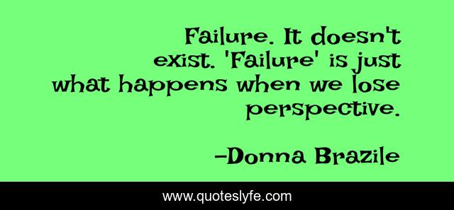This page presents the quote "Failure. It doesn't exist. 'Failure' is just what happens when we lose perspective.". Author of this quote is Donna Brazile. This quote is about exist, perspective, lose,.