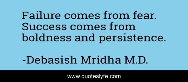 "Debasish Mridha M.D. Quotes." Quoteslyfe.com, 2025. Fri. 05 Dec. 2025. <https://www.quoteslyfe.com/quote/Failure-comes-from-fear-Success-comes-from-136120>.