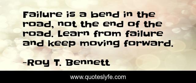This page presents the quote "Failure is a bend in the road, not the end of the road. Learn from failure and keep moving forward.". Author of this quote is Roy T. Bennett. This quote is about perseverance, motivation, inspire, optimistic, learning, living, inspiring, positive, positive-thinking,.