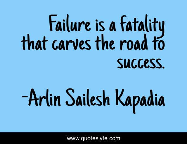 This page presents the quote "Failure is a fatality that carves the road to success.". Author of this quote is Arlin Sailesh Kapadia. This quote is about failure, road, success,.