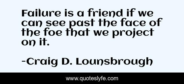 This page presents the quote "Failure is a friend if we can see past the face of the foe that we project on it.". Author of this quote is Craig D. Lounsbrough. This quote is about facial-expression, projection, failure, express, face, project, foe, projecting, facial,.
