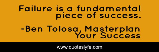 This page presents the quote "Failure is a fundamental piece of success.". Author of this quote is Ben Tolosa, Masterplan Your Success. This quote is about failure, success,.