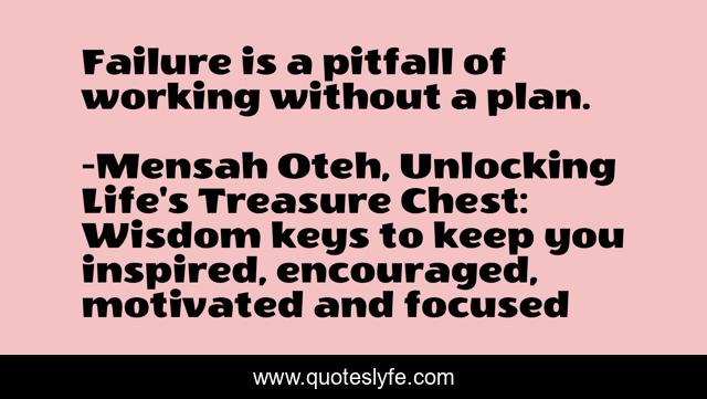 "Mensah Oteh, Unlocking Life's Treasure Chest: Wisdom keys to keep you inspired, encouraged, motivated and focused Quotes." Quoteslyfe.com, 2025. Sat. 06 Dec. 2025. <https://www.quoteslyfe.com/quote/Failure-is-a-pitfall-of-working-without-15812>.