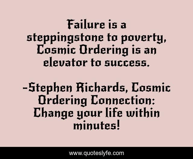 "Stephen Richards, Cosmic Ordering Connection: Change your life within minutes! Quotes." Quoteslyfe.com, 2025. Fri. 05 Dec. 2025. <https://www.quoteslyfe.com/quote/Failure-is-a-steppingstone-to-poverty-Cosmic-16925>.