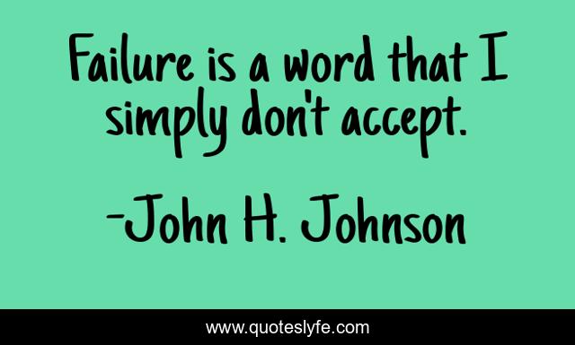 This page presents the quote "Failure is a word that I simply don't accept.". Author of this quote is John H. Johnson. This quote is about word, simply, accept,.