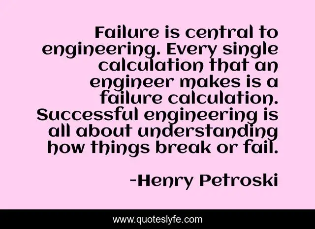 This page presents the quote "Failure is central to engineering. Every single calculation that an engineer makes is a failure calculation. Successful engineering is all about understanding how things break or fail.". Author of this quote is Henry Petroski. This quote is about successful, engineering,.