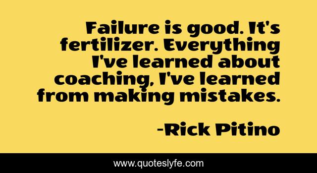This page presents the quote "Failure is good. It's fertilizer. Everything I've learned about coaching, I've learned from making mistakes.". Author of this quote is Rick Pitino. This quote is about coaching, mistakes, good,.