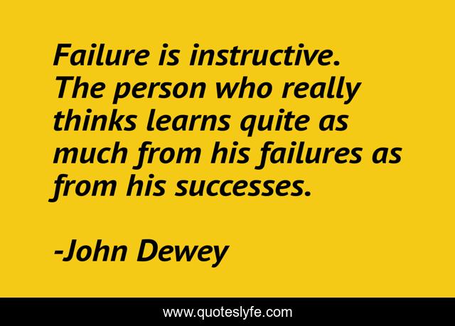 This page presents the quote "Failure is instructive. The person who really thinks learns quite as much from his failures as from his successes.". Author of this quote is John Dewey. This quote is about mistakes, learning-from-mistakes, experience, wisdom,.