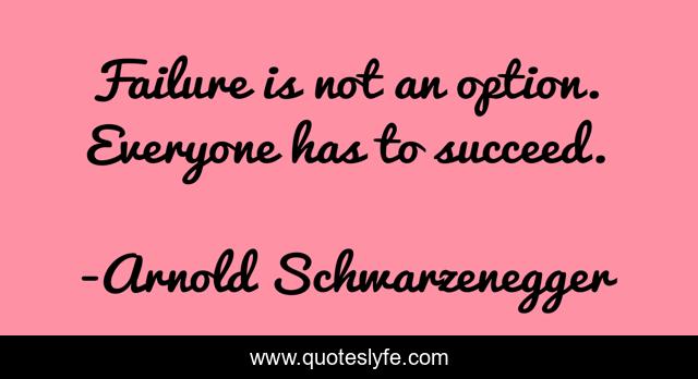 This page presents the quote "Failure is not an option. Everyone has to succeed.". Author of this quote is Arnold Schwarzenegger. This quote is about succeed, everyone, success,.