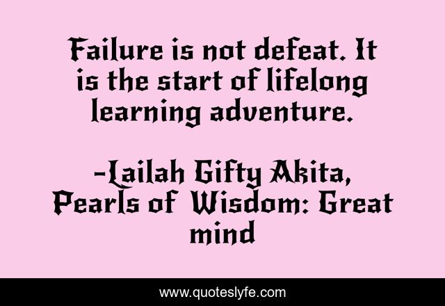 "Lailah Gifty Akita, Pearls of Wisdom: Great mind Quotes." Quoteslyfe.com, 2026. Thu. 19 Mar. 2026. <https://www.quoteslyfe.com/quote/Failure-is-not-defeat-It-is-the-91892>.