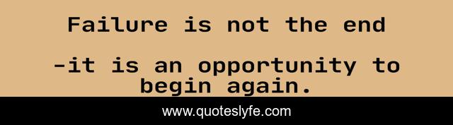 This page presents the quote "Failure is not the end". Author of this quote is it is an opportunity to begin again.. .
