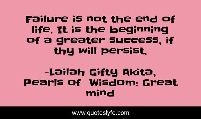 "Lailah Gifty Akita, Pearls of Wisdom: Great mind Quotes." Quoteslyfe.com, 2025. Sat. 06 Dec. 2025. <https://www.quoteslyfe.com/quote/Failure-is-not-the-end-of-life-95240>.