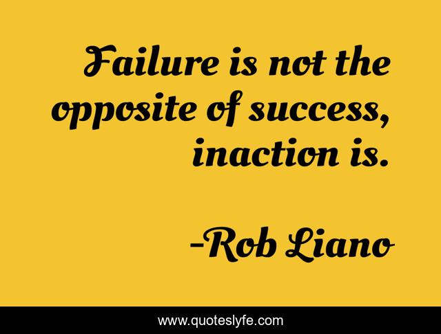This page presents the quote "Failure is not the opposite of success, inaction is.". Author of this quote is Rob Liano. This quote is about perseverance, success, act, encouragement, encouragement-and-attitude, failure, succeed, self-improvement, inspirational,.