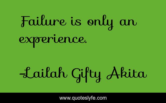 This page presents the quote "Failure is only an experience.". Author of this quote is Lailah Gifty Akita. This quote is about never-give-up, determination, positive-thinking,.