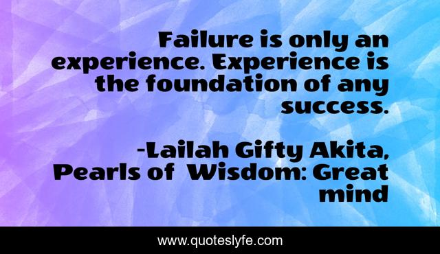 "Lailah Gifty Akita, Pearls of Wisdom: Great mind Quotes." Quoteslyfe.com, 2025. Sun. 07 Dec. 2025. <https://www.quoteslyfe.com/quote/Failure-is-only-an-experience-Experience-is-34622>.