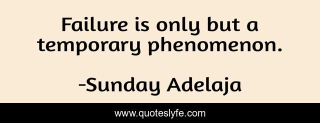 This page presents the quote "Failure is only but a temporary phenomenon.". Author of this quote is Sunday Adelaja. This quote is about failure, temporary, phenomenon,.