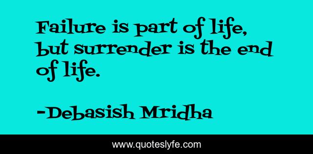 This page presents the quote "Failure is part of life, but surrender is the end of life.". Author of this quote is Debasish Mridha. This quote is about failure, philosophy, debasish-mridha, quotes, failure-is-part-of-life, inspirational, enthusiasm, surrender, debasish-mridha-m-d,.