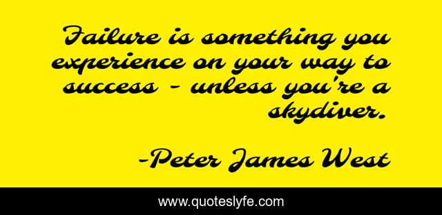 This page presents the quote "Failure is something you experience on your way to success - unless you're a skydiver.". Author of this quote is Peter James West. This quote is about enthusiasm, life, humor, humour, inspirational,.