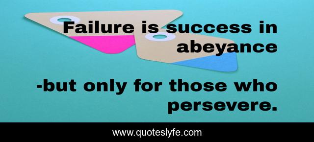 "but only for those who persevere. Quotes." Quoteslyfe.com, 2025. Fri. 05 Dec. 2025. <https://www.quoteslyfe.com/quote/Failure-is-success-in-abeyance-124200>.