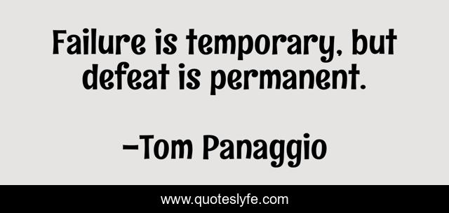 This page presents the quote "Failure is temporary, but defeat is permanent.". Author of this quote is Tom Panaggio. This quote is about failure, permanent, temporary, defeat,.