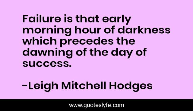 This page presents the quote "Failure is that early morning hour of darkness which precedes the dawning of the day of success.". Author of this quote is Leigh Mitchell Hodges. This quote is about failures, mistakes,.