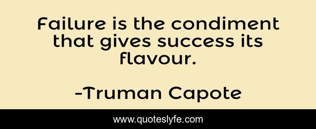 "Truman Capote Quotes." Quoteslyfe.com, 2025. Sat. 06 Dec. 2025. <https://www.quoteslyfe.com/quote/Failure-is-the-condiment-that-gives-success-32213>.