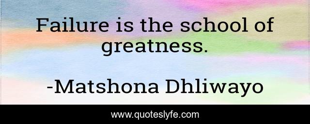 "Matshona Dhliwayo Quotes." Quoteslyfe.com, 2025. Sat. 06 Dec. 2025. <https://www.quoteslyfe.com/quote/Failure-is-the-school-of-greatness-190028>.