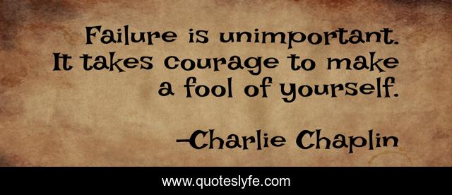 This page presents the quote "Failure is unimportant. It takes courage to make a fool of yourself.". Author of this quote is Charlie Chaplin. This quote is about fool, courage, yourself,.
