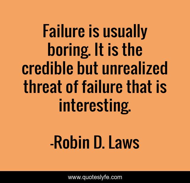 This page presents the quote "Failure is usually boring. It is the credible but unrealized threat of failure that is interesting.". Author of this quote is Robin D. Laws. .