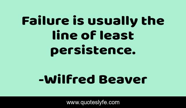 This page presents the quote "Failure is usually the line of least persistence.". Author of this quote is Wilfred Beaver. This quote is about failures, mistakes,.