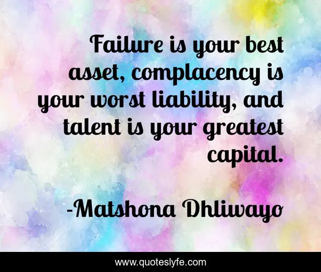 "Matshona Dhliwayo Quotes." Quoteslyfe.com, 2025. Fri. 05 Dec. 2025. <https://www.quoteslyfe.com/quote/Failure-is-your-best-asset-complacency-is-108886>.