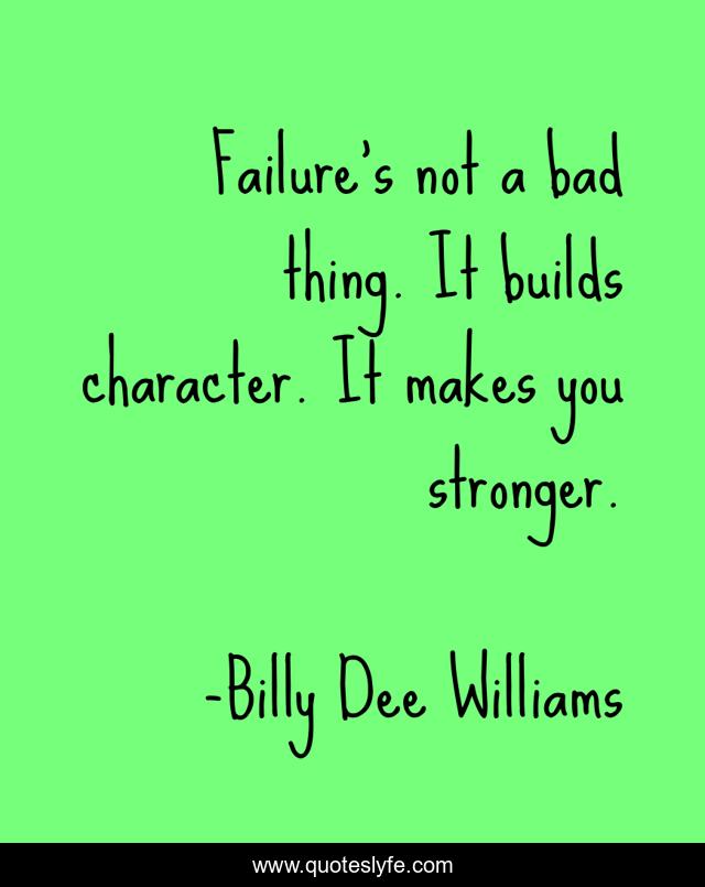 This page presents the quote "Failure's not a bad thing. It builds character. It makes you stronger.". Author of this quote is Billy Dee Williams. This quote is about character, stronger,.